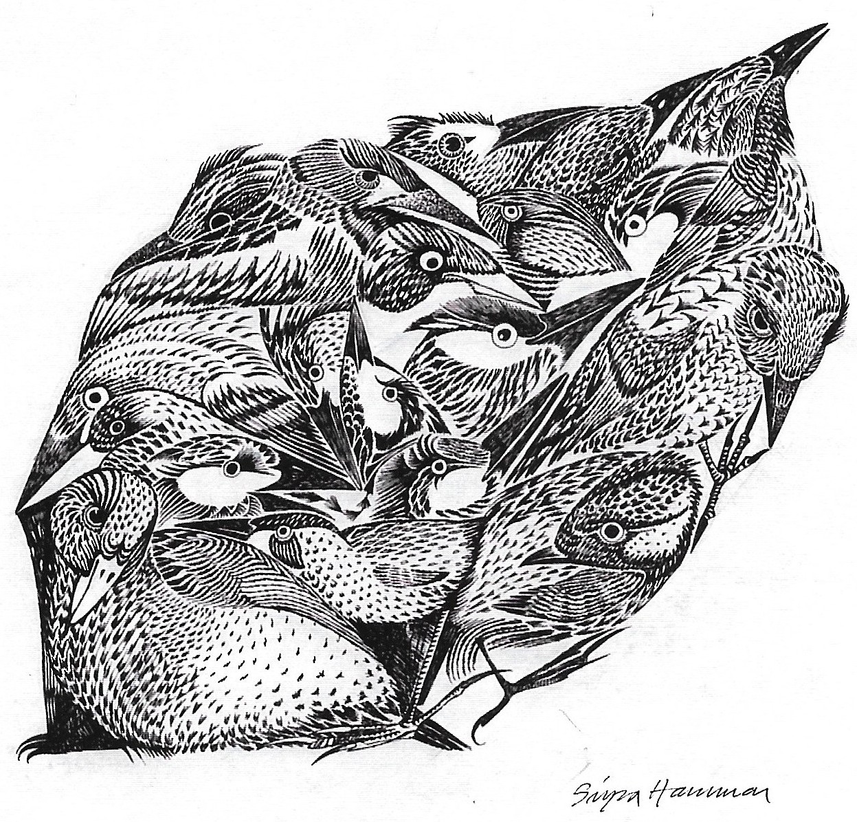 Linnut – Sirpa Hammar 2000, rapidograph
